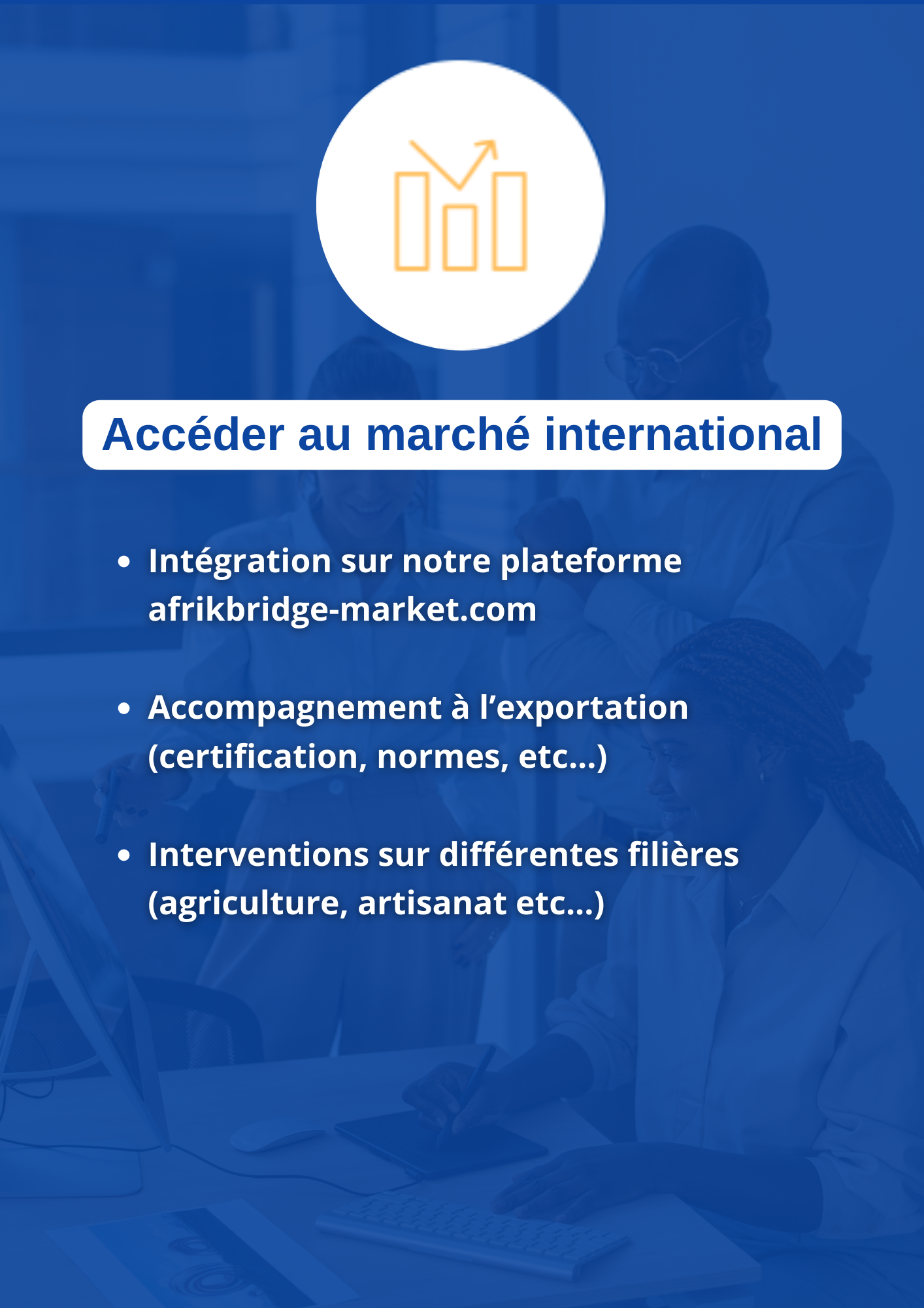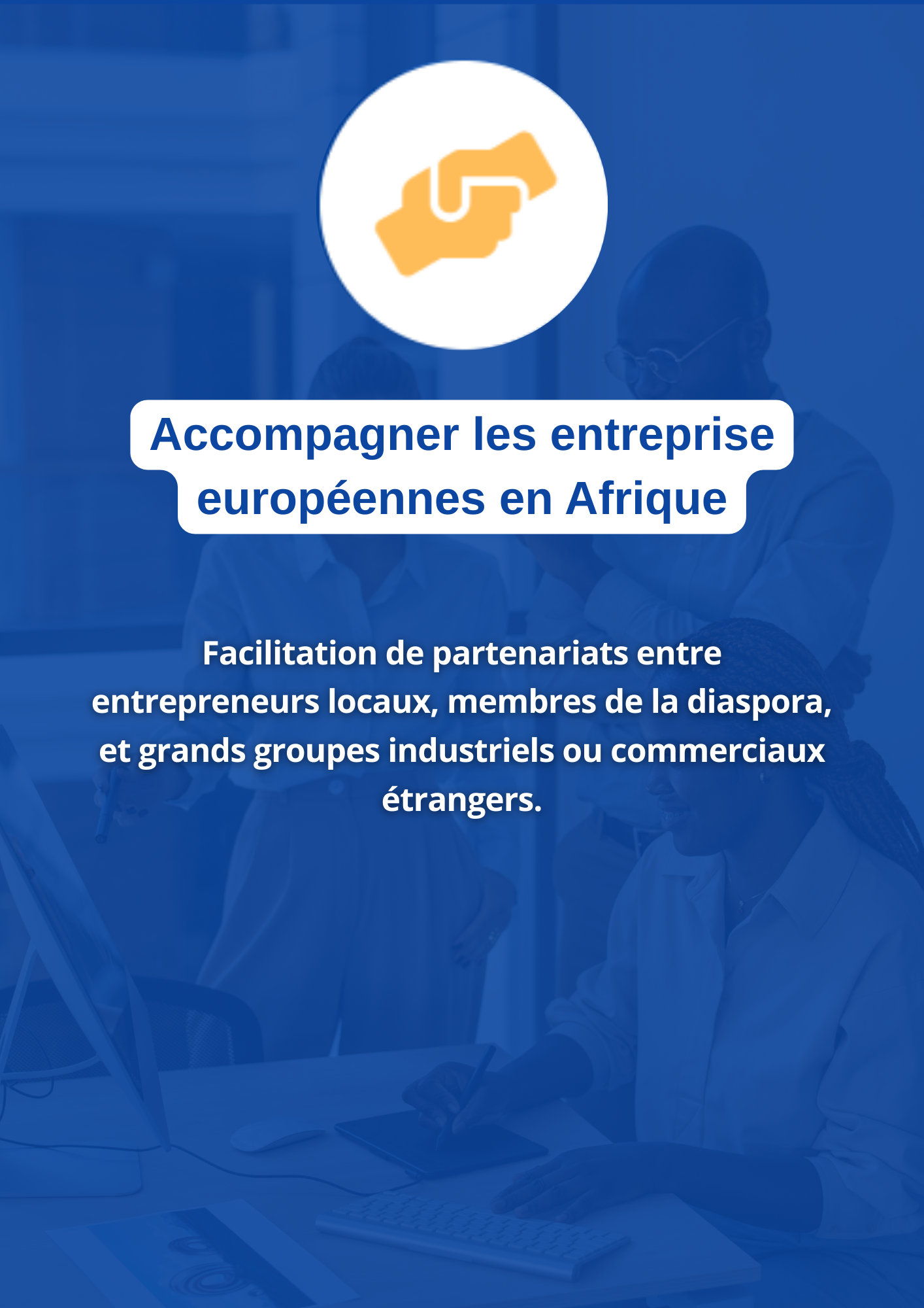 Etablir un écosystème corporatif innovant pour renforcer la coopération entre la diaspora et l’Afrique, en apportant des solutions adaptées aux exigences des marchés locaux et internationaux.